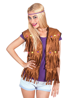 Unser Online-Shop hält eine riesen Auswahl für Sie und wirklich jeden Geschmack bereit. Mit einer Weste kann man nicht nur einen Look nach dem Zwiebel-Verfahren kreieren (besonders an kälteren Tagen sehr zu empfehlen), sondern auch einen weiteren Hingucker für das Outfit schaffen, für das man sich nach langem Überlegen entschieden hat. Beispielsweise gehören Fransen zu einem echten Hippie-Kostüm einfach dazu! Mit einer passenden Fransen-Weste haben Sie Ihr Outfit so gut wie fertig: Ein Blümchen-Kleid und Cowboy-Stiefel hat jede Frau im Schrank! Suchen Sie noch ein paar aufregende Hippie-Accessoires und schon haben Sie ein einzigartiges Kostüm, mit dem Sie jedes Jahr aufs Neue glänzen können!