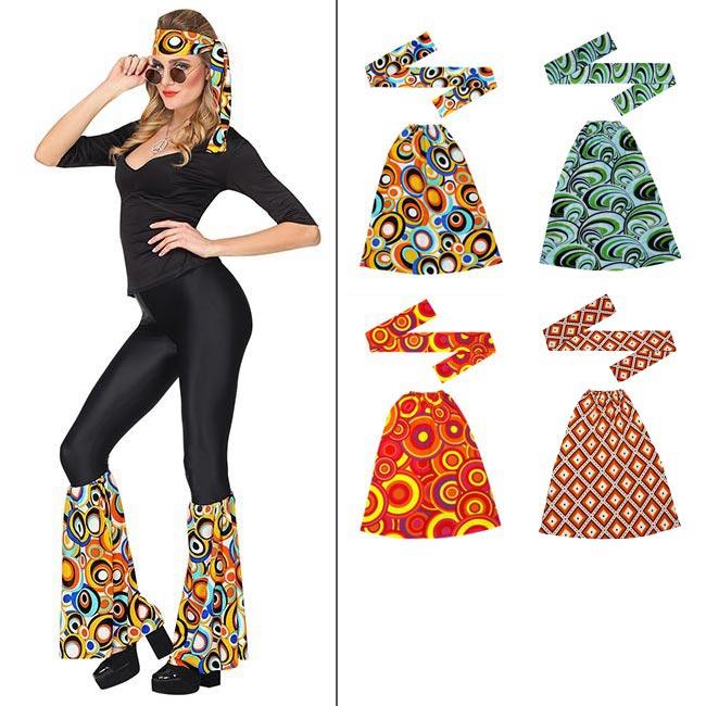 Mit diesem Accessoire-Set verwandeln Sie eine öde Leggings schnell in ein groovy Outfit zum Abtanzen! Das Set wird dreiteilig geliefert und besteht aus 2 Beinstulpen mit elastischem Bund, sowie einem farblich passenden Stirnband. Alle Bestandteile dieses Sets bestehen aus 95% Polyester sowie 5% Elasthan. Die Beinstulpen haben eine Länge von ca. 44 cm und werden einfach über Ihr Bein gestreift. Der elastische Bund hält alles an seinem Platz. Das Stirnband misst ca. 107 cm. Es kann zwischen den Farben Gelb-Weiß, Pink-Gelb, Orange sowie Blau-Grün gewählt werden. Klicken Sie bitte auf die gewünschte Option um ein genaues Produktbild Ihrer Farbauswahl zu sehen. Ob symmetrische oder unsymmetrische Kreise, Wellen oder Rauten, diese Muster passen hervorragend in die wilden 70er. Im Lieferumfang sind ausschließlich zwei Beinstulpen, sowie ein Stirnband in der von Ihnen ausgewählten Farbe enthalten. Andere abgebildete Artikel werden NICHT mitgeliefert. In unserem Shop erwarten Sie noch weitere tolle Accessoires.