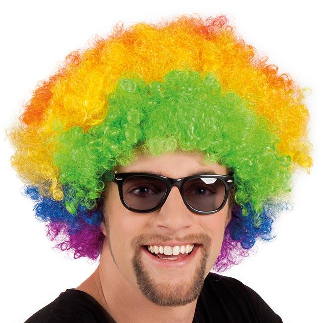 Diese große, dichte Afro Perücke in allen Regenbogenfarben ist der richtige Lockenkopf für alle, die aus der Masse herausstechen möchten. Diese Afro-Perücke besteht aus lila, blauen, grünen, gelben, orangenen und roten Locken, die eine wahre Farbexplosion auf Ihrem Kopf entfachen.