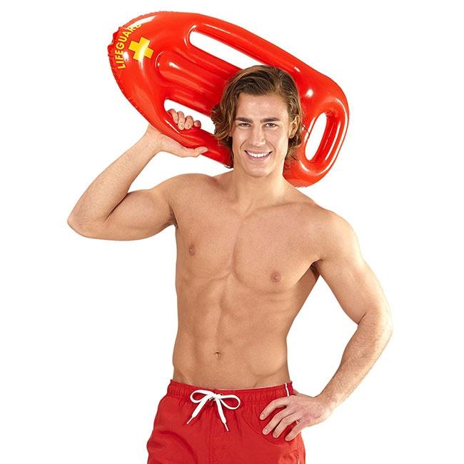 Die aufblasbare Rettungsboje ist aus Kunststoff und hat aufgeblasen eine Länge von ca. 73 cm. Sie ist in typischem Rettungsschwimmer-Rot gehalten und mit dem gelben Aufdruck "Lifeguard" und einem Kreuz versehen. Bei diesem Artikel handelt es sich um einen Partyartikel und nicht um eine Schwimmhilfe!