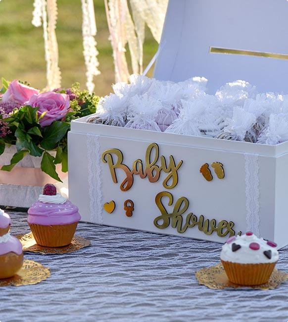 • Aufkleber aus Holz "Baby Shower" 6-tlg. - Deko Beispiel