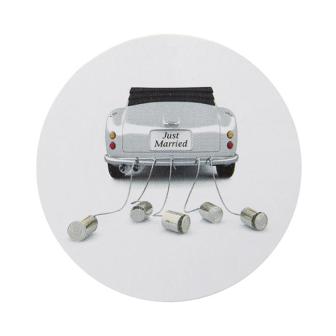 Die Aufkleber "Just Married" sind zu 50 Stück verpackt und bestehen aus dünner Folie. Vorderseitig ist ein Cabriolet, welches Konservendosen hinter sich herzieht aufgedruckt, mit dem Kennzeichen "Just Married" - typisch für frisch vermählte!