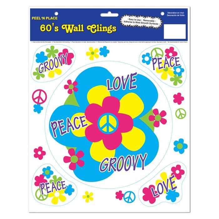 Artikel: Aufkleber-Set 60er Jahre Flower-Power 23,5 cm 5-tlg.