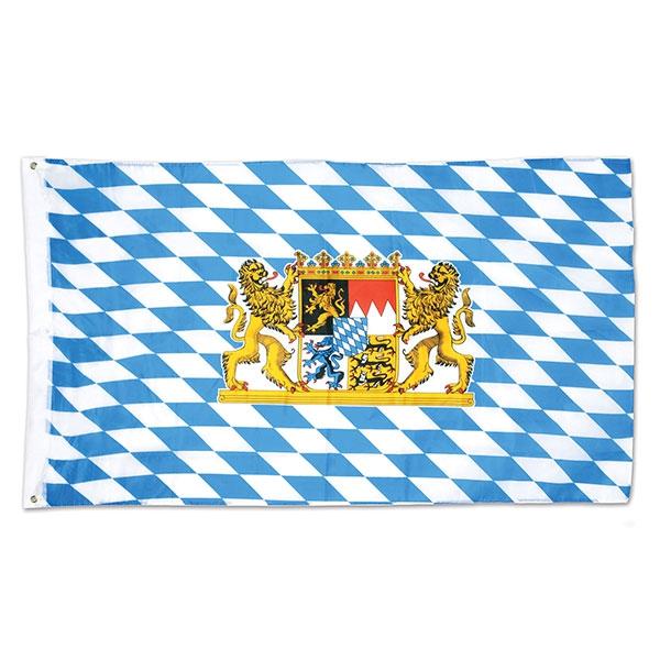Das Banner "Bayern" besteht aus Polyester und hat eine Größe von ca. 152 x 91 cm. Es ist auf einer Seite mit zwei Ösen ausgestattet. Als Motiv zeigt es die Staatsflagge und das Staatswappen Bayerns.