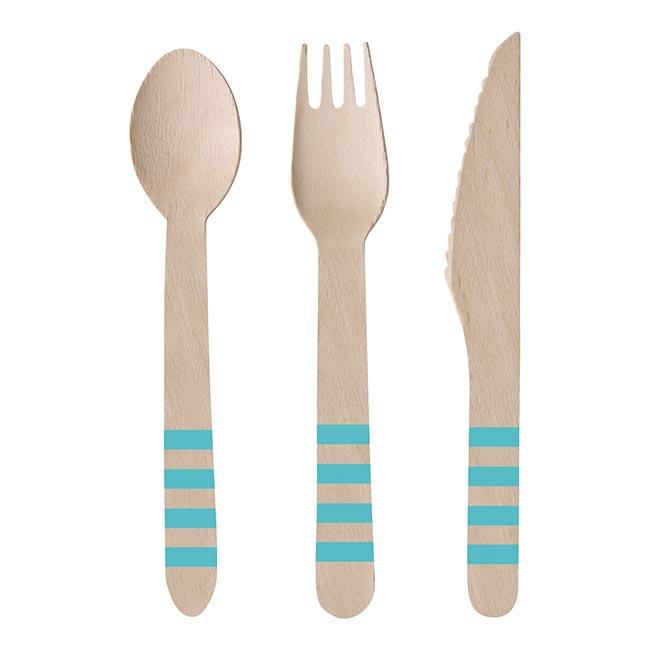 Artikel: Besteck aus Holz "Streifen" 24-tlg.-blau