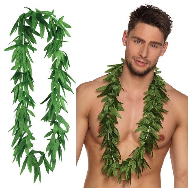 High auf Hawaii? Die Blumenkette "Hanf" enthält garantiert keine berauschenden Inhaltsstoffe, sieht dafür aber absolut cool aus. Die ca. 11 cm großen Blätter in Hanf-Optik bestehen aus Polyester. Transparente Kunststoffröhrchen sorgen für Abstand zwischen den Blättern. Es handelt sich um eine Einheitsgröße für Erwachsene.
