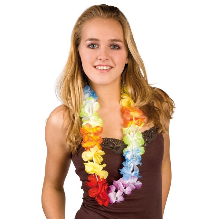 Aloha! Mit dieser Blumenkette werden Ihre Hüften ganz automatisch den Hula tanzen und Sie werden sich direkt fühlen wie ein sexy Hula-Girl. Die Blumenkette Rainbow besteht aus bunten Seidenblumen. Die einzelnen bunten Blüten sind bis auf die gelben und roten wunderschön in zarten Farbverläufen gefärbt. So laufen die grünen, blauen, und lila Blüten jeweils von weiß in die kräftige Farbe und die orangen Blüten von gelb in ein traumhaftes orange. Die schönen Farbverläufe der einzelnen Blüten machen diese Blumenkette zu einem ganz besonderen Hingucker!
