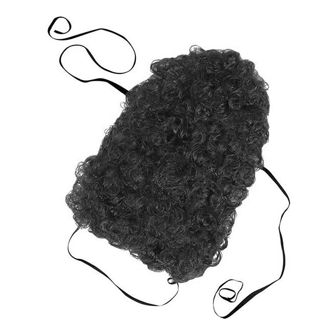 Die Brusthaare bestehen aus 100% Polyester und sind gelockt. Die Länge der gesamten Haarfläche betragt ca. 25 cm mit einer Breite von ca. 15 cm.