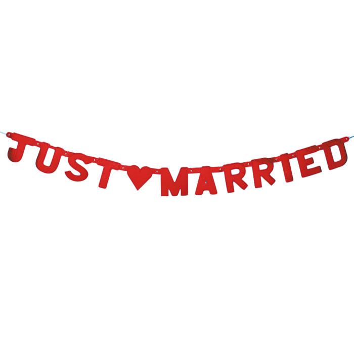 Mehr Info: Die Buchstaben-Girlande "Just Married" ist aus glänzend bedrucktem Karton hergestellt und hat eine Länge von ca. 1,5 m.