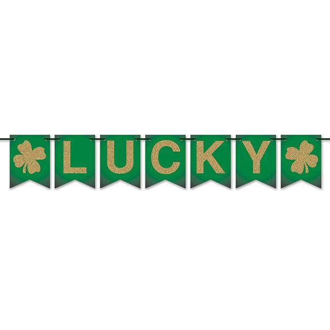 Mehr Info: Kleeblätter, die grün-goldene Farbkombination und der Schriftzug "Lucky" machen die Girlande zur ultimativen St. Patrick's Day Deko!