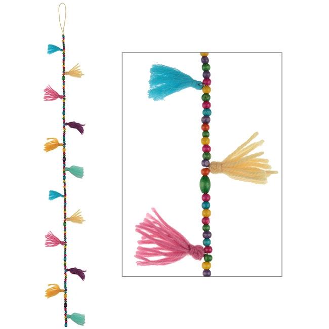 Artikel: Bunte Holzperlen-Girlande mit Quasten 95 cm