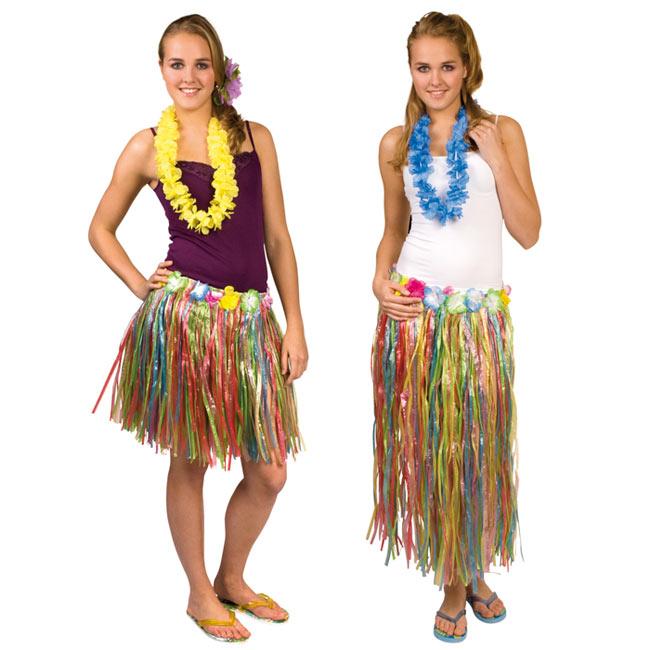 Dieser schöne bunte Hawaii-Rock ist so vielfarbig, dass er richtig gute Laune verbreitet! Am Bund sind viele bunte künstliche Blumen, die einen tollen Übergang zu Ihrer Blumenkette herstellen. Dieser Rock ist in 2 Varianten erhältlich: ca. 45 cm und ca. 80 cm. Mit einem schlichten Shirt, der Blumenkette und Schlappen sehen Sie garantiert aus, als hätte man sie frisch aus Hawaii importiert!
