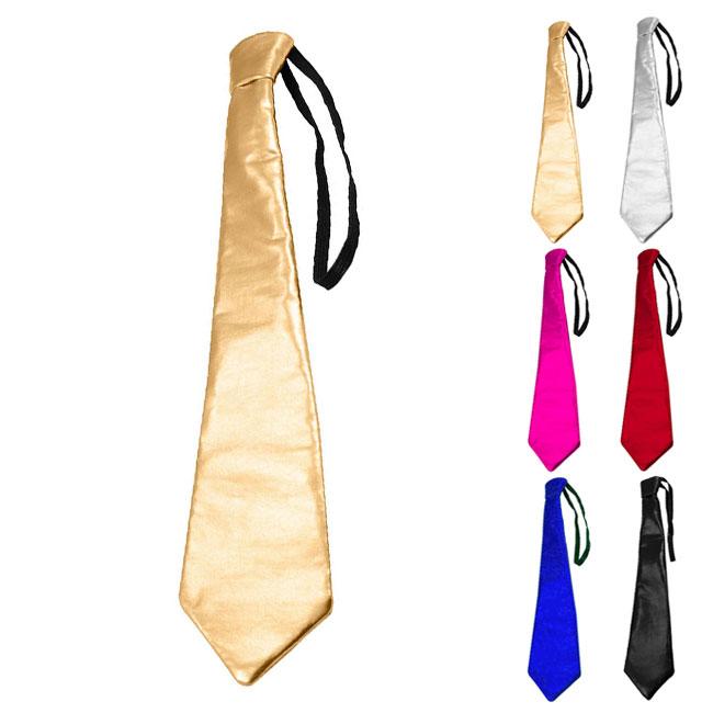Die glänzende Krawatte hat eine Länge von ca. 35 cm und misst an der breitesten Stelle ca. 7,5 cm. Sie ist, je nach Auswahl, schwarz, silber, gold, pink, rot oder blau. Die Krawatte wird mit einem integrierten Reißverschluss geliefert. Aufgrund dessen ist sie größenverstellbar und kann ganz individuell von Ihnen angepasst werden.