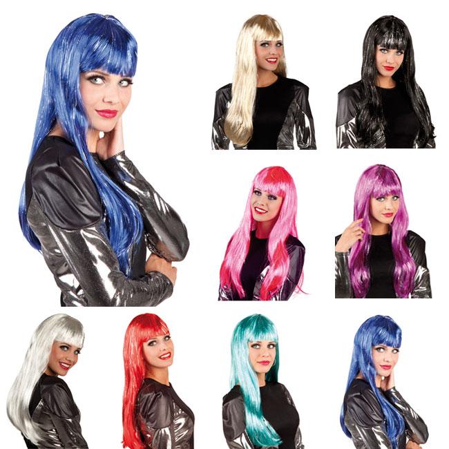 Mehr Info: Eine Perücke, viele Farben. Dieses schöne Exemplar ist verfügbar in Blau, Blond, Schwarz, Pink, Lila, Weiß, Rot und Türkis.