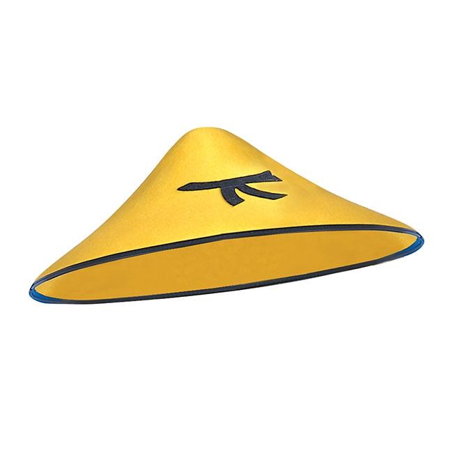 Dieser chinesische Hut ist typisch für diese Art von Hüten Gelb und hat ein schwarzes chinesisches Zeichen auf der Vorderseite. Mit einem Durchmesser von ca. 36 cm kann er einfach auf den Kopf gesetzt werden. Er wird in Einheitsgröße geliefert und eine gelbe Schnur bringt den Hut zum Halten auf dem Kopf.
