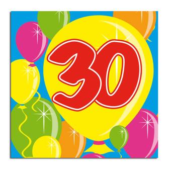 Artikel: Cocktailservietten "Happy Birthday Bunte Ballons" 30. Geburtstag 20er Pack