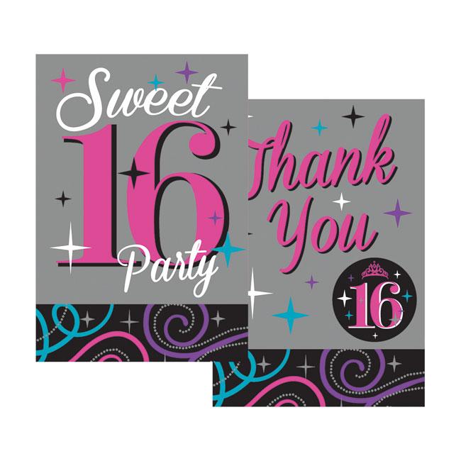 Dankes- und Einladungskarten "Sweet 16 Party" 40-tlg.
