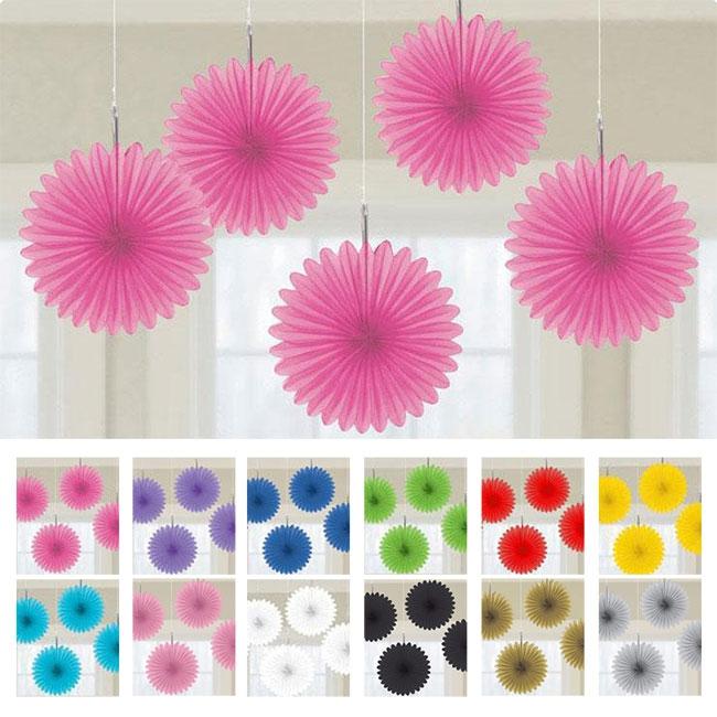 Mit diesen Wabenpapier-Blüten verzaubern Sie jede Party-Location in eine fröhlich bunte Party-Welt. Ob draußen an Bäumen oder Sträuchern befestigt oder innen von der Decken hängend - die Wabenpapier-Deko ist für innen wie außen eine tolle und günstige Partydeko. Je nach Wunsch bekommen Sie die Wabenpapier-Blüten in Schwarz,Rosa, Silber, Gold, Gelb, Grün, Blau, Hellblau, Rot, Pink, Lila oder Weiß im 5er Pack geliefert. Aufgeklappt hat jede Blüte einen Durchmesser von ca. 15,2 cm.