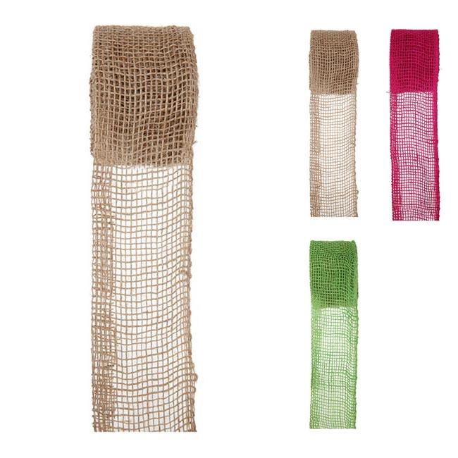 Das Deko-Band "Rustikales Ambiente" besteht aus Jute, ist ca. 7 cm breit und ca. 5 m lang. Es kann zwischen den Farben Natur, Grün und Pink gewählt werden.