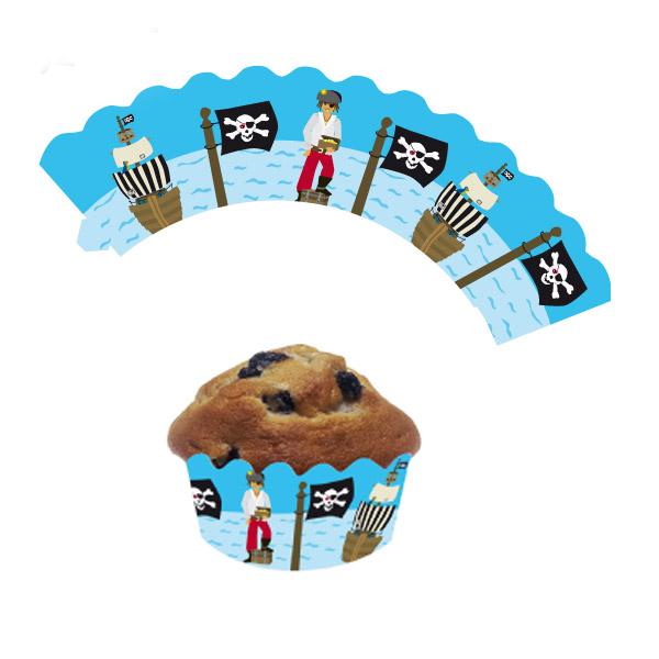 Artikel: Deko-Banderolen für Muffins "Aufregende Piratenreise" 12er Pack