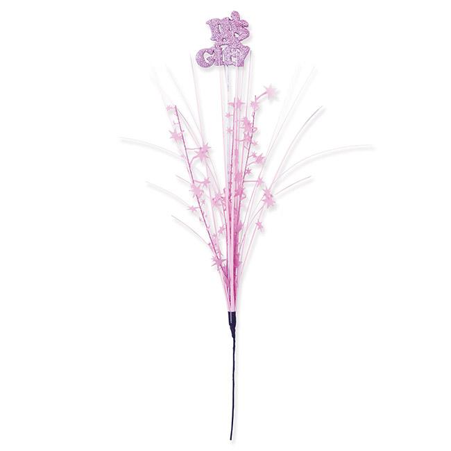Die Deko-Fontäne "It's a girl" hat eine Länge von ca. 58 cm und ist in der Farbe Rosa gehalten. Sie besteht aus Kunststoff, Draht und ist an der Spitze mit dem Glitzer-Schriftzug "It's a girl" versehen.