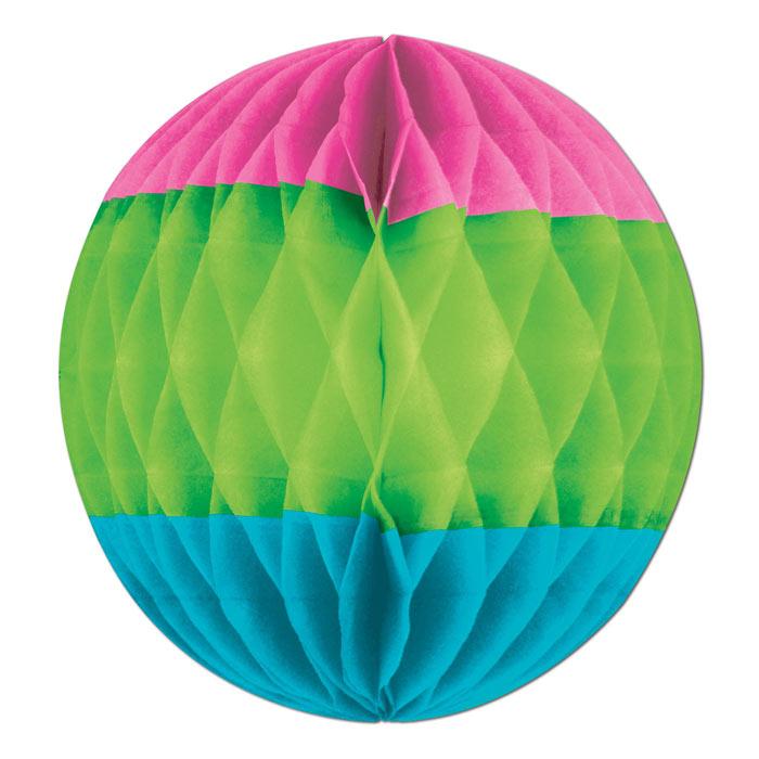 Ein toller Hingucker in knalligen Farben ist dieser Dekohänger mit 3D-Effekt durch das aufwändig verarbeitete Wabenpapier. Aufgeklappt sieht die Raumdeko aus wie ein Wabenpapier-Ball in den Farben Pink, Grün und Türkis - das Leuchten kommt alleine von den Farben! Ob Sie nun eine ausgefallene Dekoration für eine 80er Jahre Retro-Party suchen oder noch einen Farbtupfer für eine Miami-Vice-Party benötigen - greifen Sie zu!