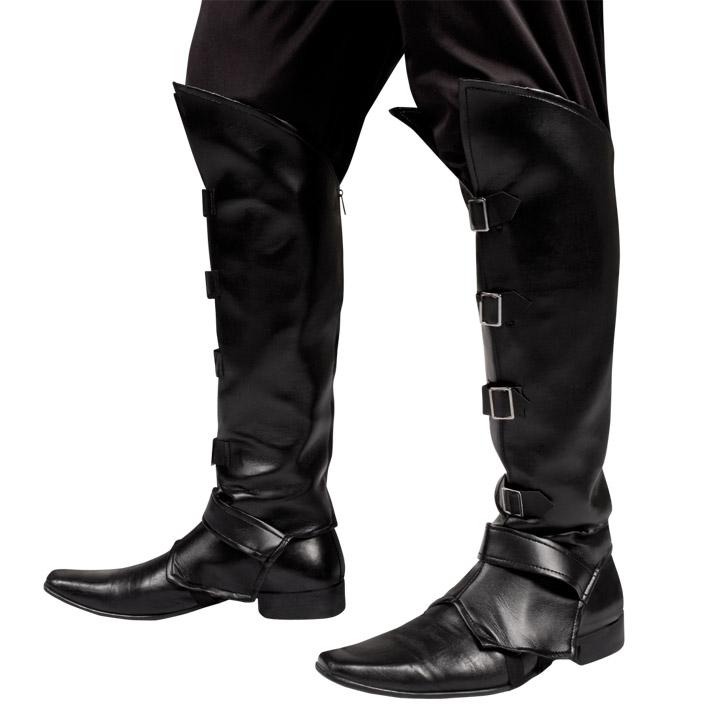 Mit diesen Stulpen ist Ihr Outfit besonders schick! Die in Lederoptik gehaltenen Stiefel-Stulpen sind schwarz und haben an der Vorderseite jeweils 4 Schnallen angebracht. Ob als Pirat oder als wilder Rocker, die edlen Stulpen passen einfach perfekt zu diversen Mottoparty-Kostümen. Sie brauchen sich nun nicht mehr den Kopf zerbrechen, welche Schuhe Sie zum Outfit tragen, denn mit diesen Stiefel-Stulpen können Sie einfach Ihre bequemsten Schuhe wählen, seien es sogar die Turnschuhe oder Hausschuhe!