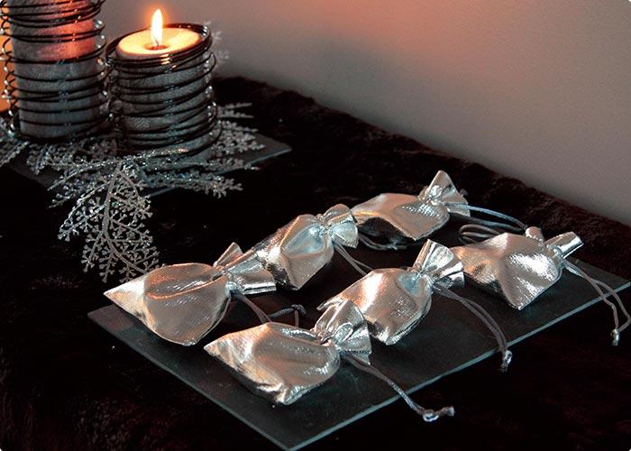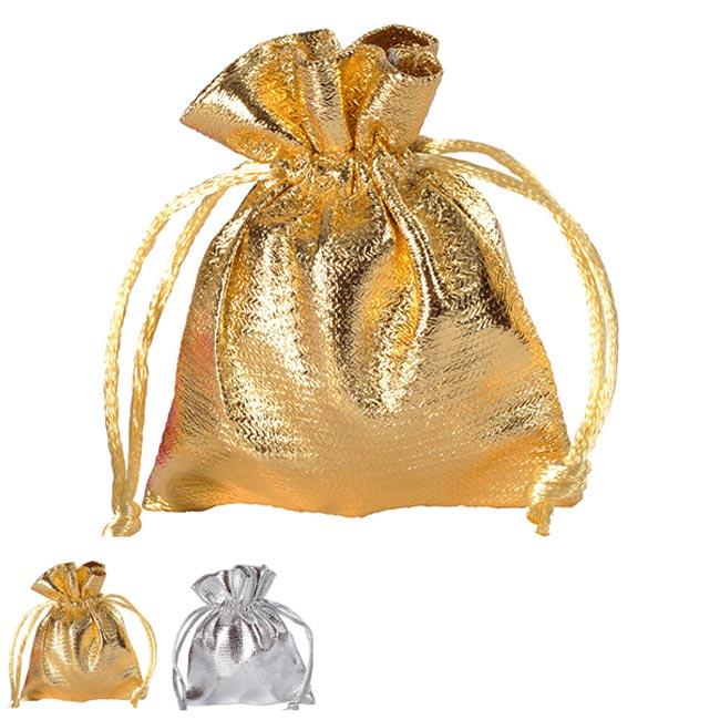 Die edlen einfarbigen Säckchen sind jeweils zu 6 Stück abgepackt und in den Farben Silber und Gold bestellbar. Das Säckchen glänz edel in der ausgewählten Farbe. Ein Säckchen hat eine Größe von ca. 8 x 10 cm und besteht aus Polyester. Mit einer Schlaufe können die Säckchen zugezogen werden.