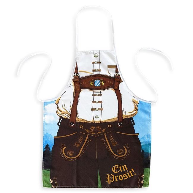 Die Schürze ist mit einem typisch, bayerischen Oktoberfest-Outfit bedruckt und wird in einer Einheitsgröße geliefert. Sie hat eine Länge von ca. 68 cm. Mit Hilfe von verlängerten Bändern wird die Schürze sowohl im Nacken, als auch an der Taille gebunden.
