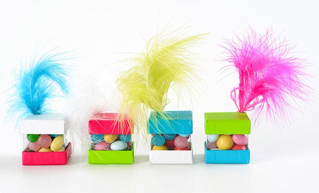 Mehr Info: Eine Dekoration wie im Farbenrausch! Besonders hübsch machen sich die farbenfrohen Federn auf einer dezenten weißen Tischdecke, wo sie als Eye-Catcher besonders hervorstechen. Weiße oder elfenbeinfarbene Federn ergänzen und unterstreichen Ihre besonders geschmackvolle Tischdekoration.