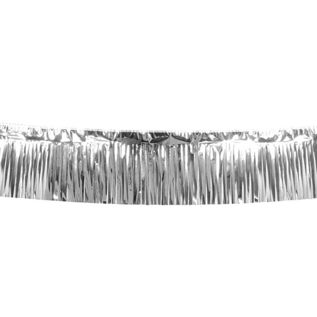 Die einfarbige Fransen-Girlande "Edles Fest" besteht aus metallischer Folie, ist ca. 30 cm hoch und ca. 6 m lang. Es kann zwischen den Farben Gold und Silber gewählt werden.