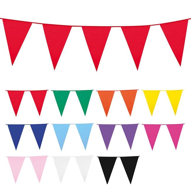 Die mini Wimpel-Girlanden bestehen aus einfarbiger Kunststofffolie und können in den aufregenden Farben Lila, Grün, Rot, Gelb, Pink, Rosa, Hellblau, Blau, Orange, Schwarz oder Weiß bestellt werden. Jede Girlande ist ca. 3 m lang und besteht aus 12 kleinen Wimpeln (ca. 11 x 14 cm). Bei so einer Farbvielfalt, wird auch sicherlich etwas für Ihre Party dabei sein.