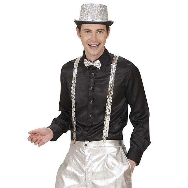 • Einfarbige Pailletten-Hosenträger "Showstar"-silber - Beispiel Mann