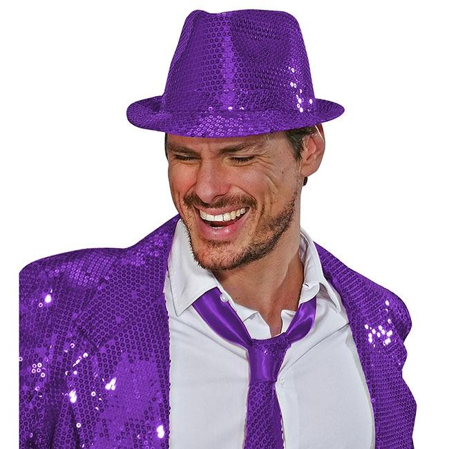 • Einfarbiger Pailletten-Hut -lila - Beispiel Mann