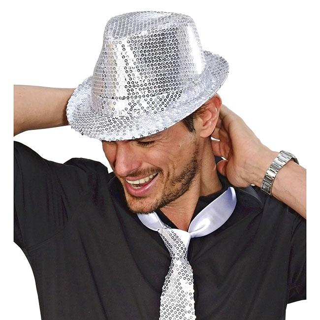 • Einfarbiger Pailletten-Hut -silber - Beispiel Mann