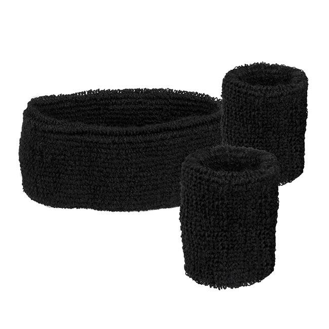 Artikel: Einfarbiges Schweißband-Set "Sweat" 3-tlg.-schwarz
