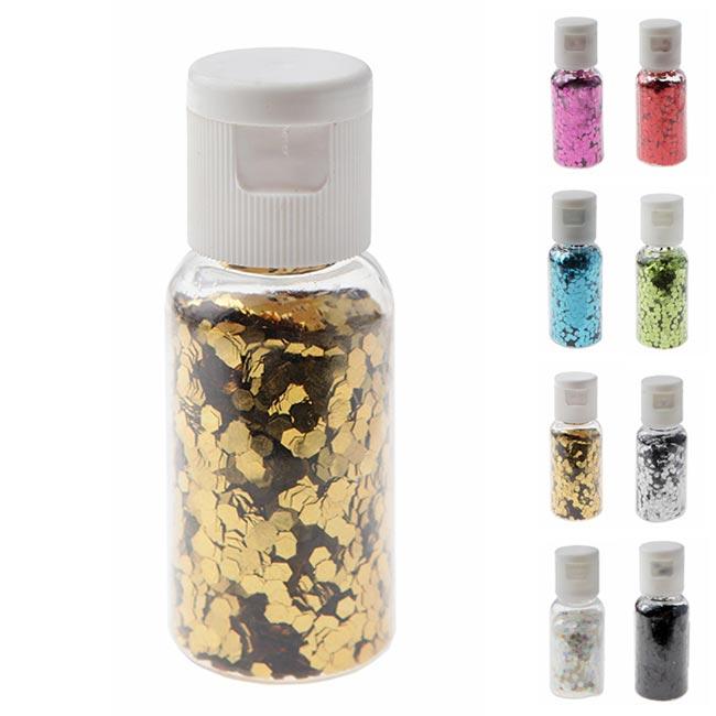 Kleine Akzente sind in der Deko besonders wichtig. Dieses Streugut hat eine Achteckige Form und ist in 15g Fläschen abgefüllt. Die einzelnen Teile sind etwa 2 mm groß und aus metallischer Folie gefertigt. Es stehen die Farben Pink, Türkis, Rot, Grün, Gold, Silber, Weiß und Schwarz zur Verfügung.
