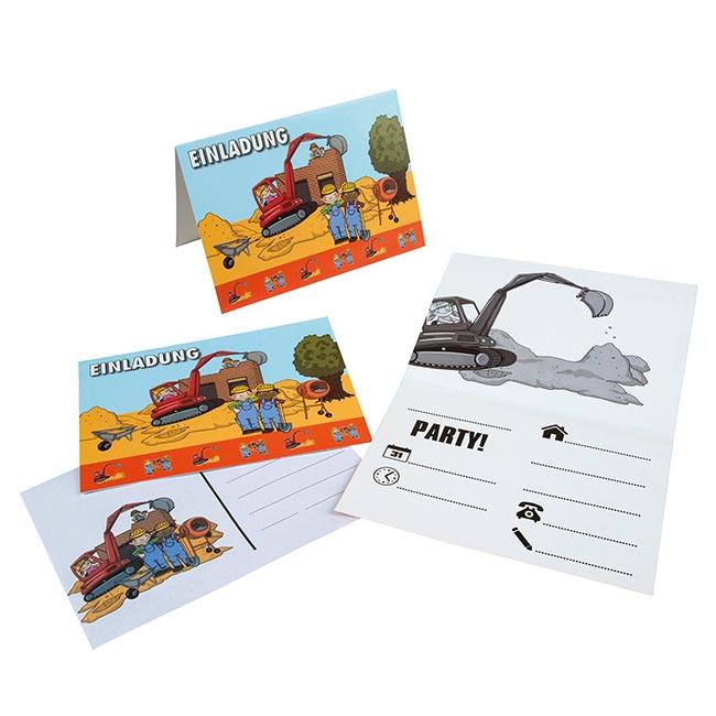 Einladungskarten "Auf der Baustelle" mit Umschlägen 8er Pack