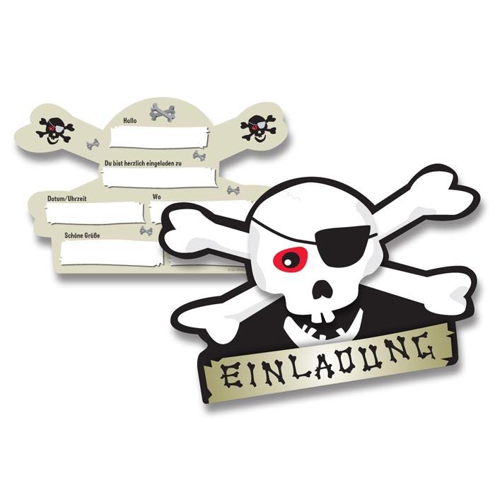 Einladungskarten "Aufregende Piratenreise" 6er Pack