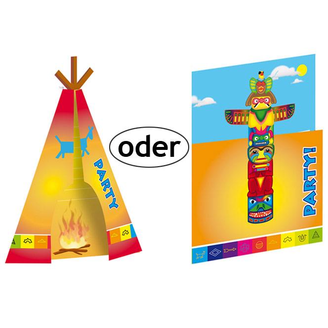 Diese Einladungskarten werden im 8er Pack geliefert. Es handelt sich um zwei verschiedene Ausführungen, einmal Einladungskarten in Indianerzelt-Form und einmal eine rechteckige Karte mit einem Indianer-Pfahl. Die Ausführung ist nicht frei wählbar, sie wird je nach Lagerbestand versendet. Das Zelt ist aufklappbar und kann von innen mit allen wichtigen Daten beschrieben werden. Die andere Karte ist ebenfalls aufklappbar und beschreibbar. Zu jeder Karte ist auch der passende Umschlag beigefügt. Die Maße betragen ca. 10,5x15 cm.