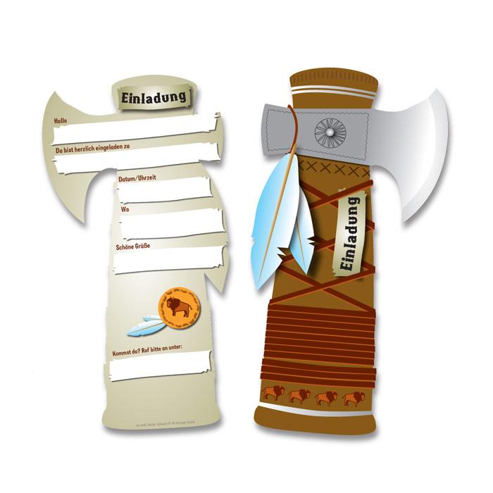 Artikel: Einladungskarten "Indianer-Tomahawk" 6er Pack