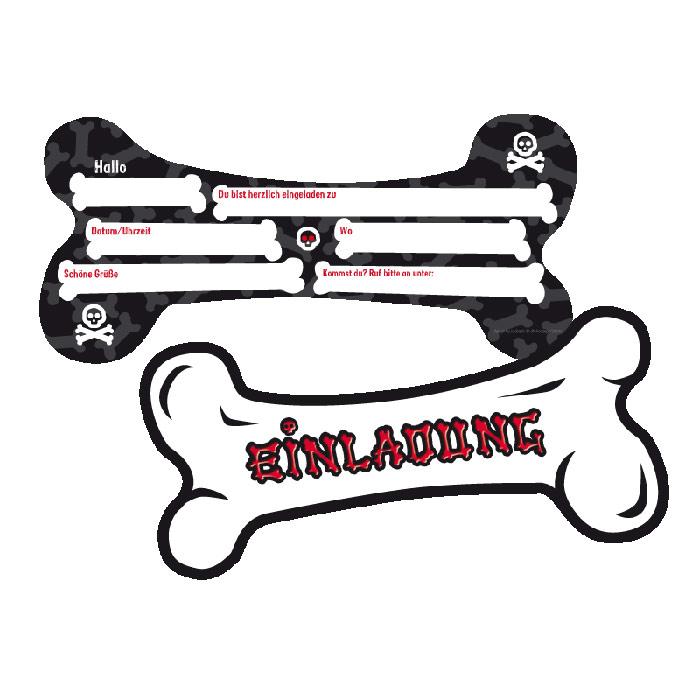 Artikel: Einladungskarten "Knochen" 6er Pack
