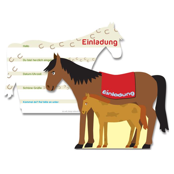Mehr Info: Die Einladungskarten sind auf der Rückseite mit Hufeisen verziert und haben eine Größe von ca. 11 x 14 cm.