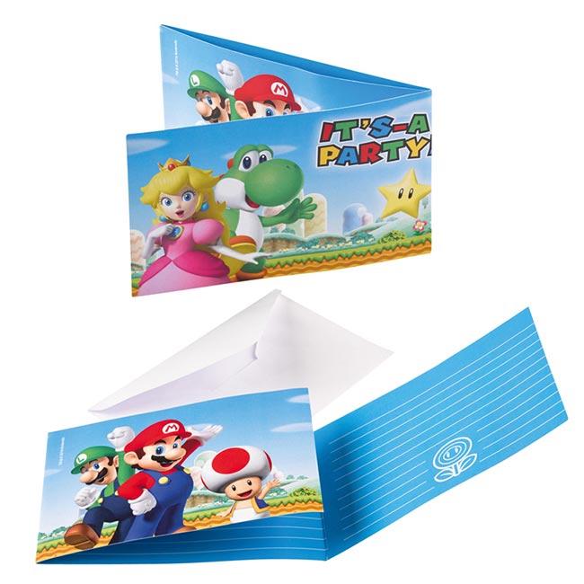 Einladungskarten "Super Mario" mit Umschlägen 8er Pack
