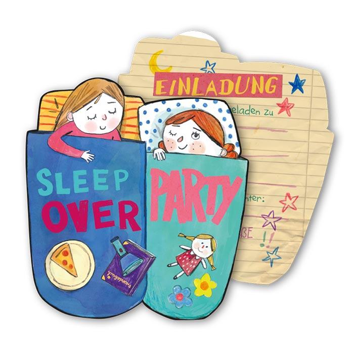 Artikel: Einladungskarten "Übernachtungsparty" 6er Pack