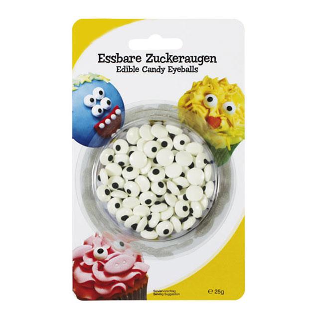 Diese Zuckeraugen sind eine tolle Deko für diverse Kuchen und vor allem Muffins und Cupcakes. Die Augen werden in einer 25 Gramm Verpackung geliefert und haben jeweils einen Durchmesser von ca. 1 cm. Sie können ohne Probleme mit verzehrt werden und schmeckten nach Zucker. Es können ganz tolle Gesichter aus den Augen gezaubert werden so dass die Muffins fast zu schade zum Essen sind!