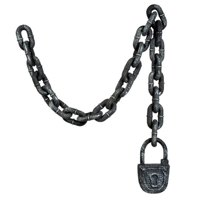 Hinter Gittern mit einer Fessel und einem Schloss fest angebunden, so kommt der Bösewicht garantiert nicht wieder auf freien Fuß! Diese Fessel hat eine Länge von ca. 120 cm und am Ende befindet sich ein großes Schloss mit einer Größe von ca. 16 cm. Das Schloss und die Fessel bestehen aus Kunststoff und dienen als Accessoire zu einem Sträfling Kostüm oder als Deko für eine Piratenparty oder Halloweenparty. Das Schloss lässt sich nicht verschließen.