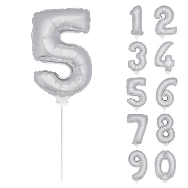 Folien-Ballon "Silberne Zahl" inkl. Stab 36 cm