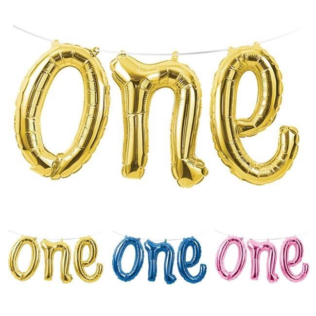 Die Folienballon-Girlande "Number one" hat eine Länge von ca. 152 cm. Sie wird mit einem weißen Satinband geliefert, sodass Sie sie problemlos an der Wand befestigen können. Die Ballons bilden das Wort "one" und sind ca. 30,4 cm groß. Je nach Auswahl sind sie blau-, rosa- oder goldfarben. Bitte beachten Sie, dass die Ballons unbefüllt geliefert werden, aber von Ihnen mit Luft befüllt werden können.