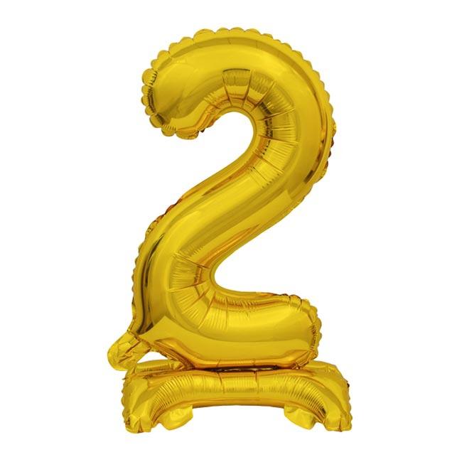 Folienballon mit Standfuß Zahl in Gold 38 cm-2